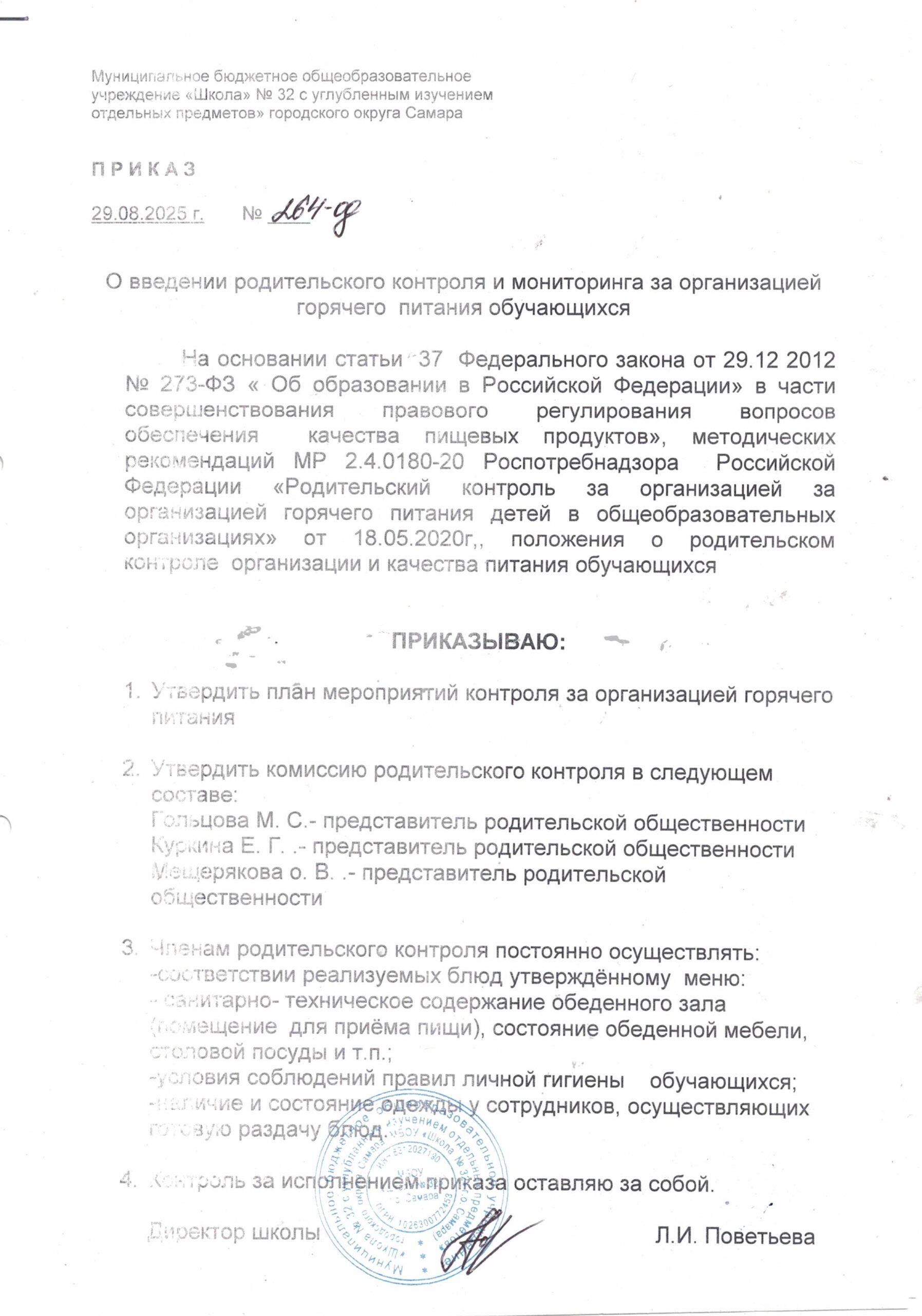 - Приказ об организации горячего питания