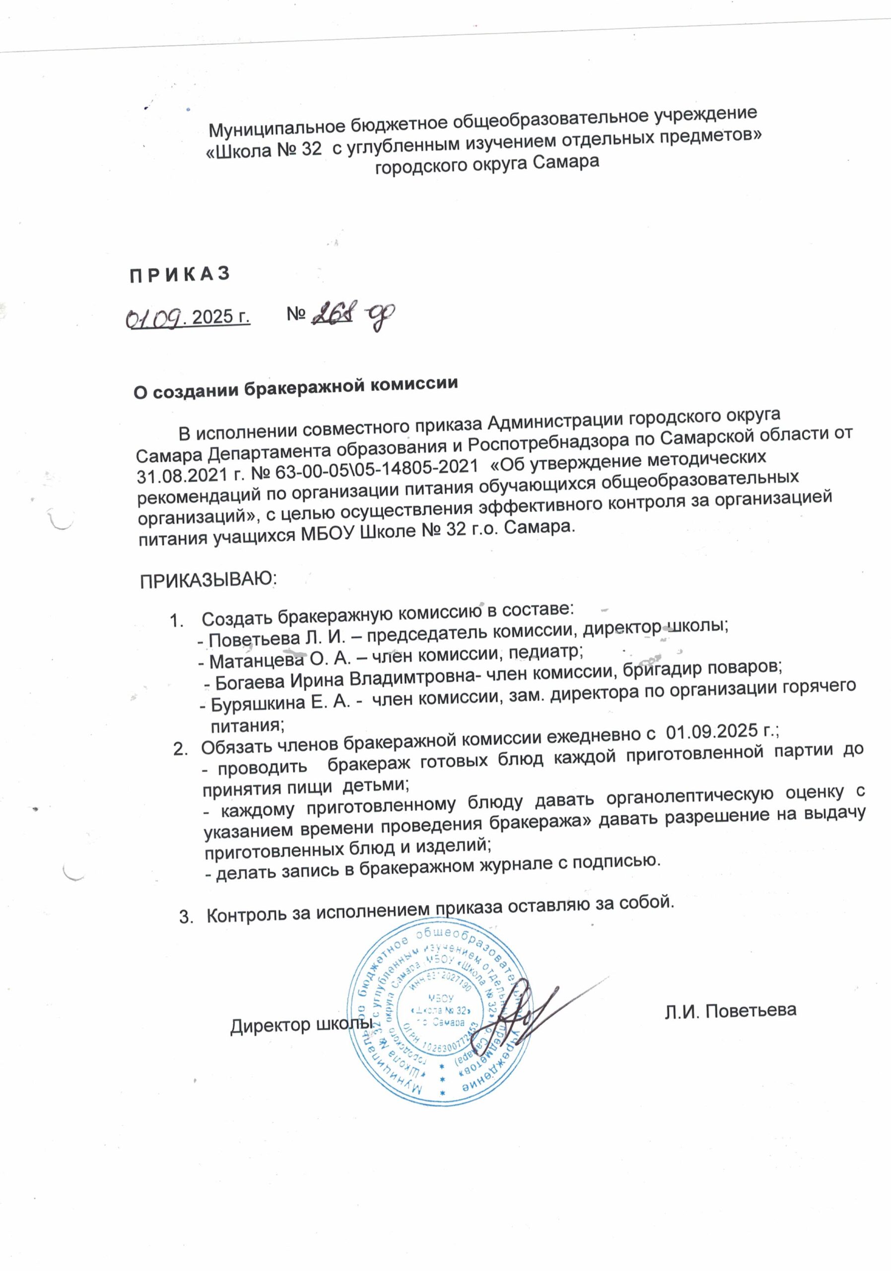- Положение о бракеражной комиссии МБОУ Школы № 32 г.о. Самара