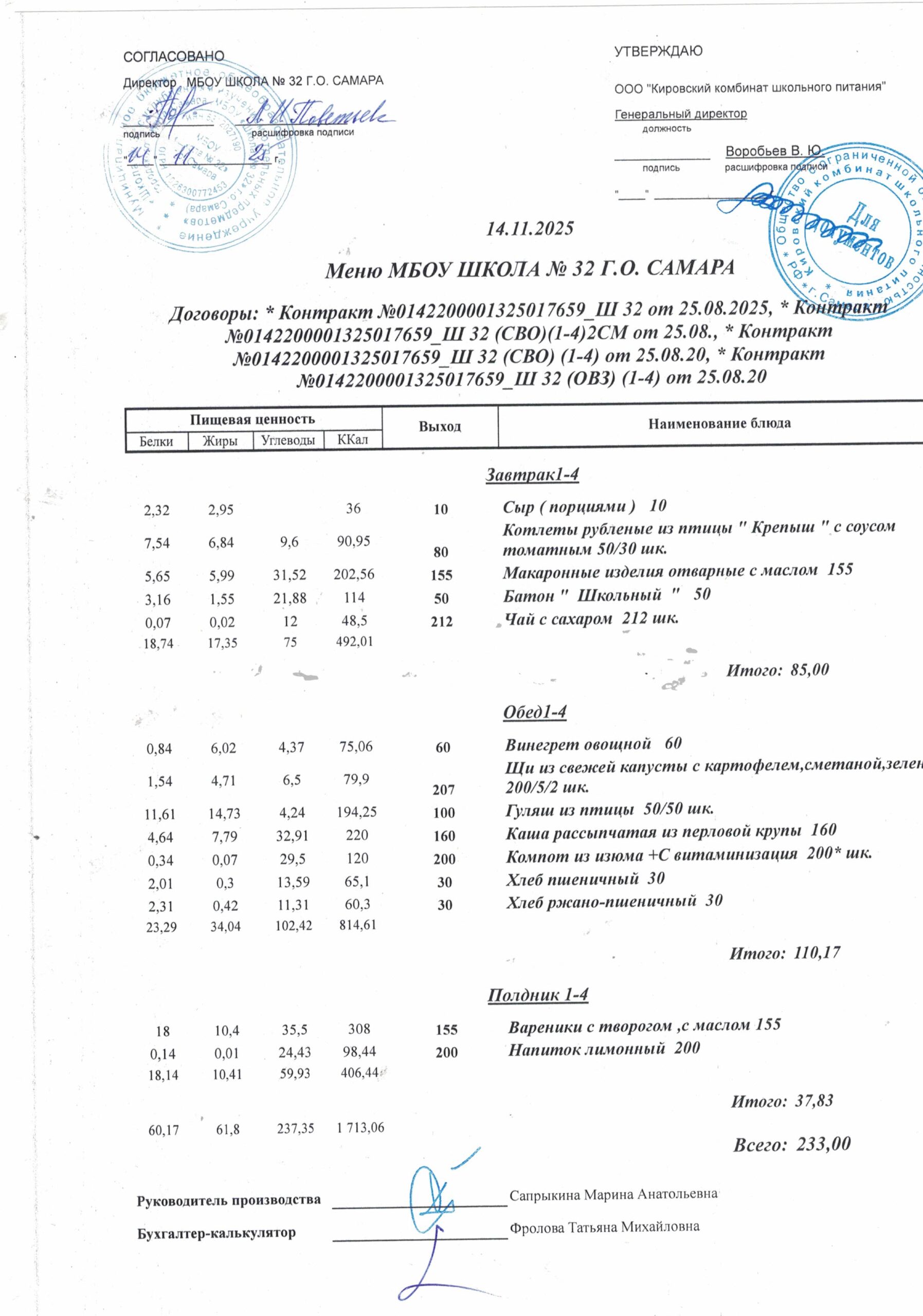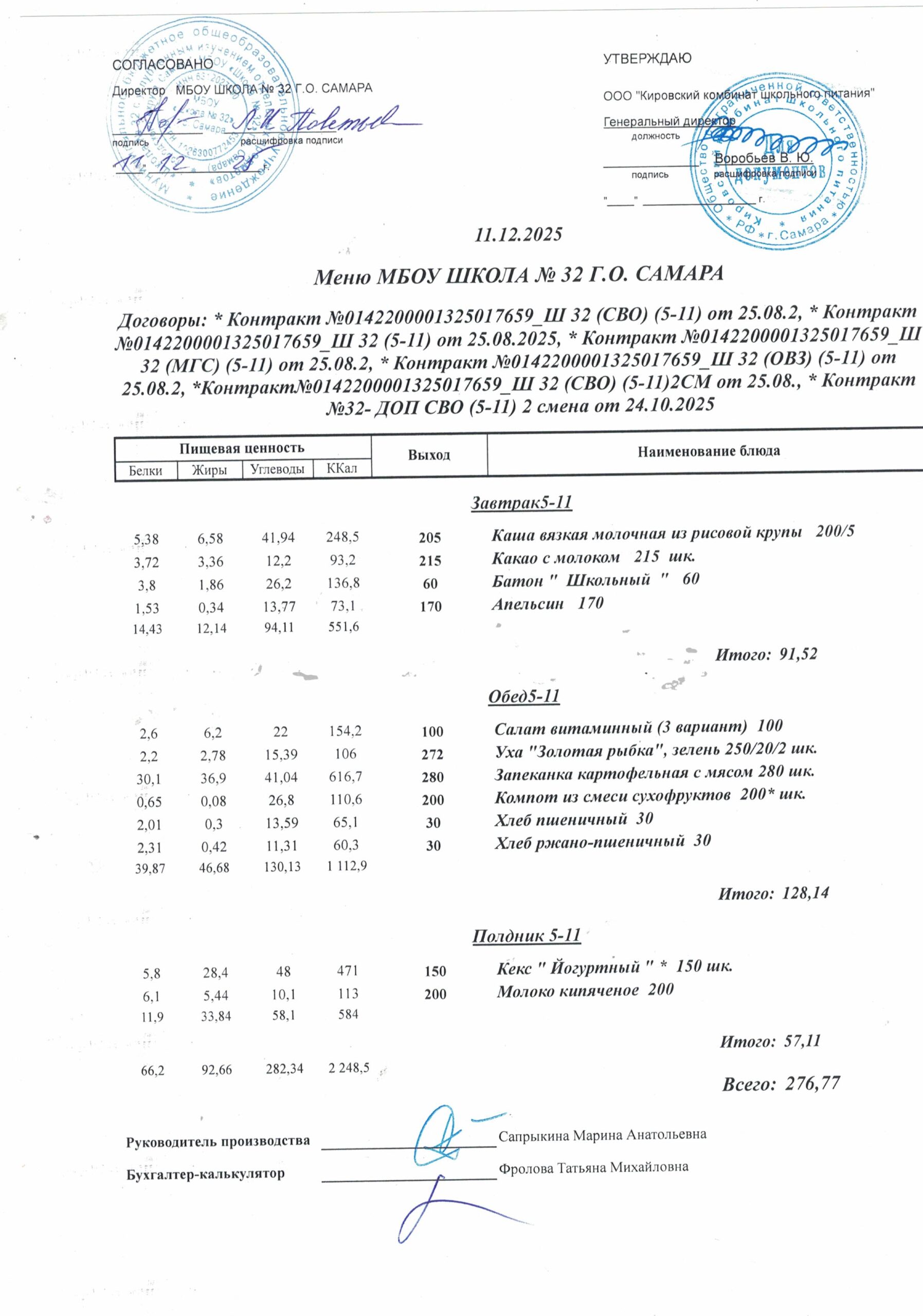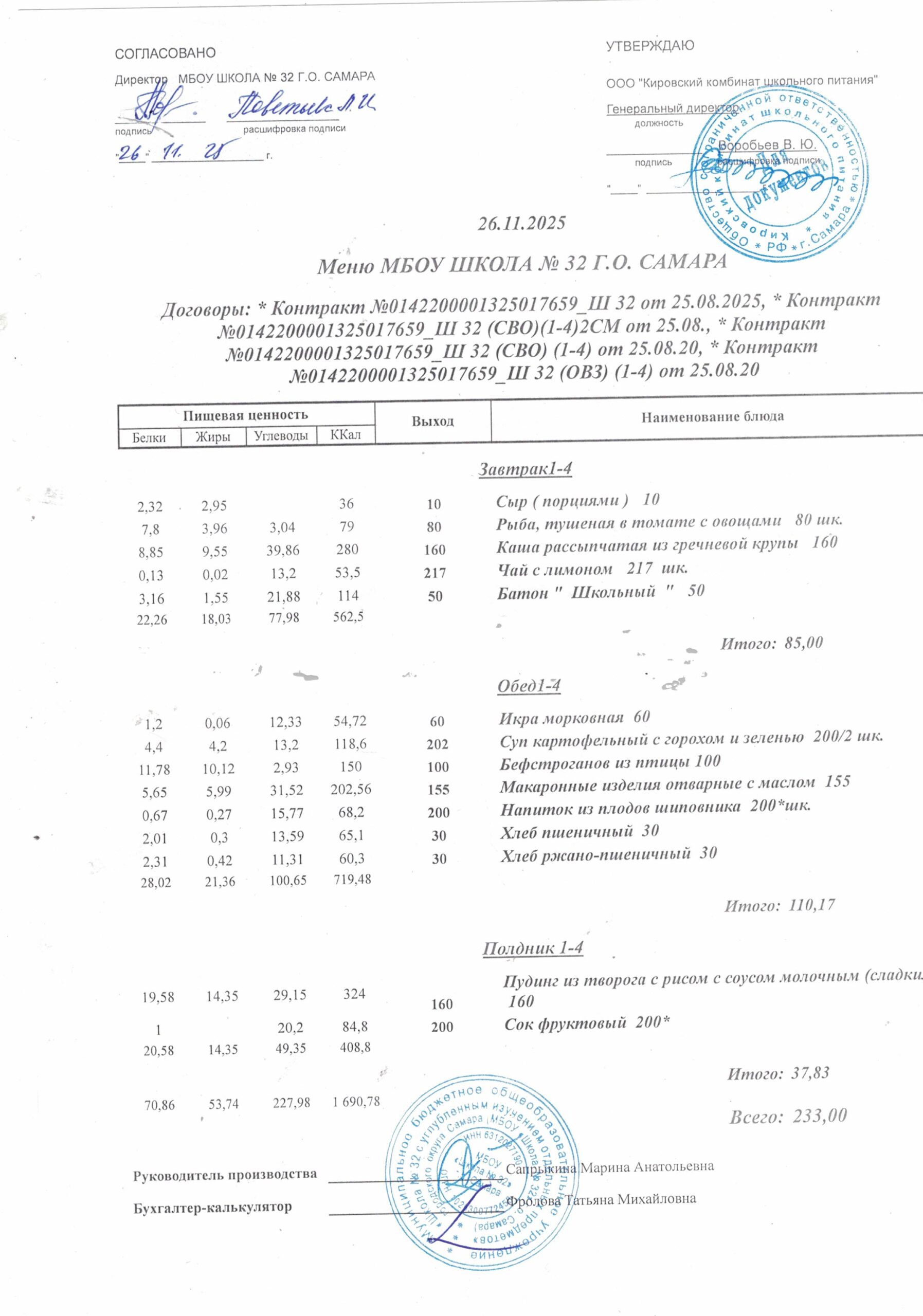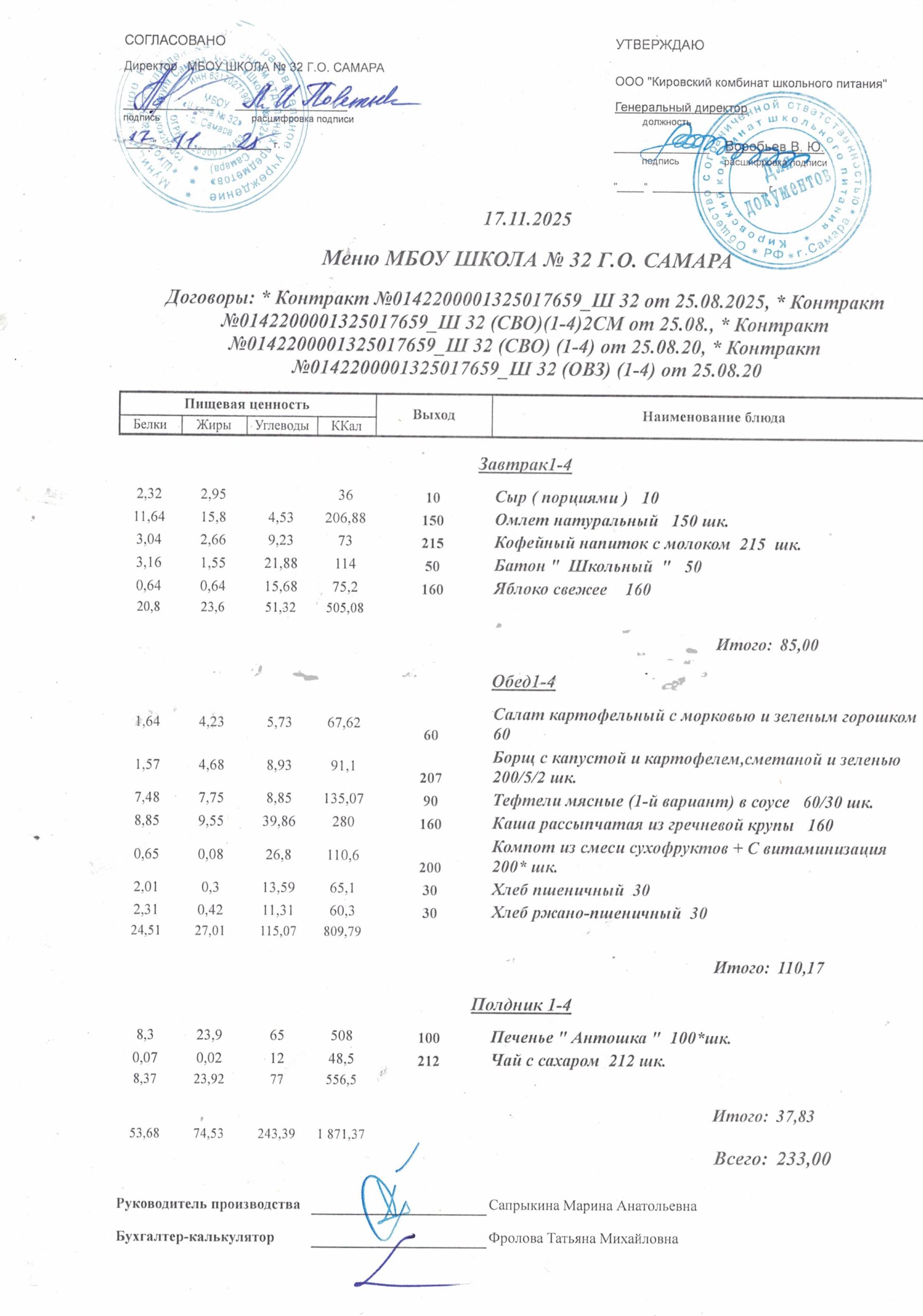 | 1-4 класс (льготное питание) | 5-11 класс | ||