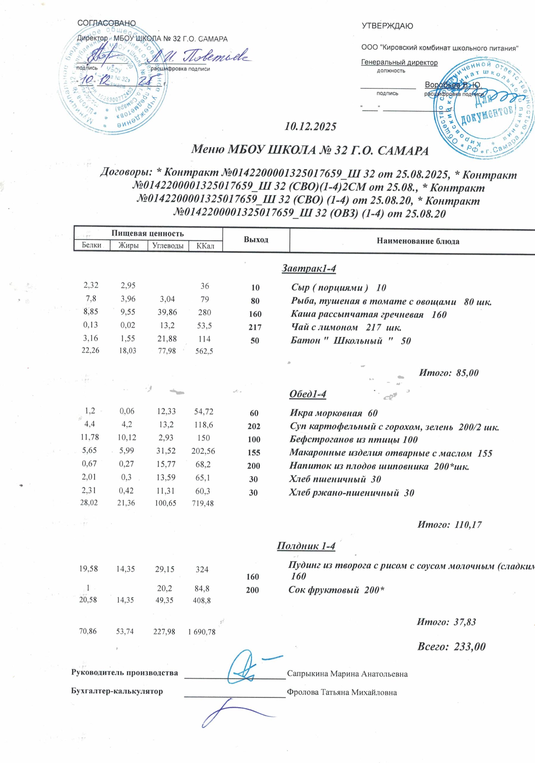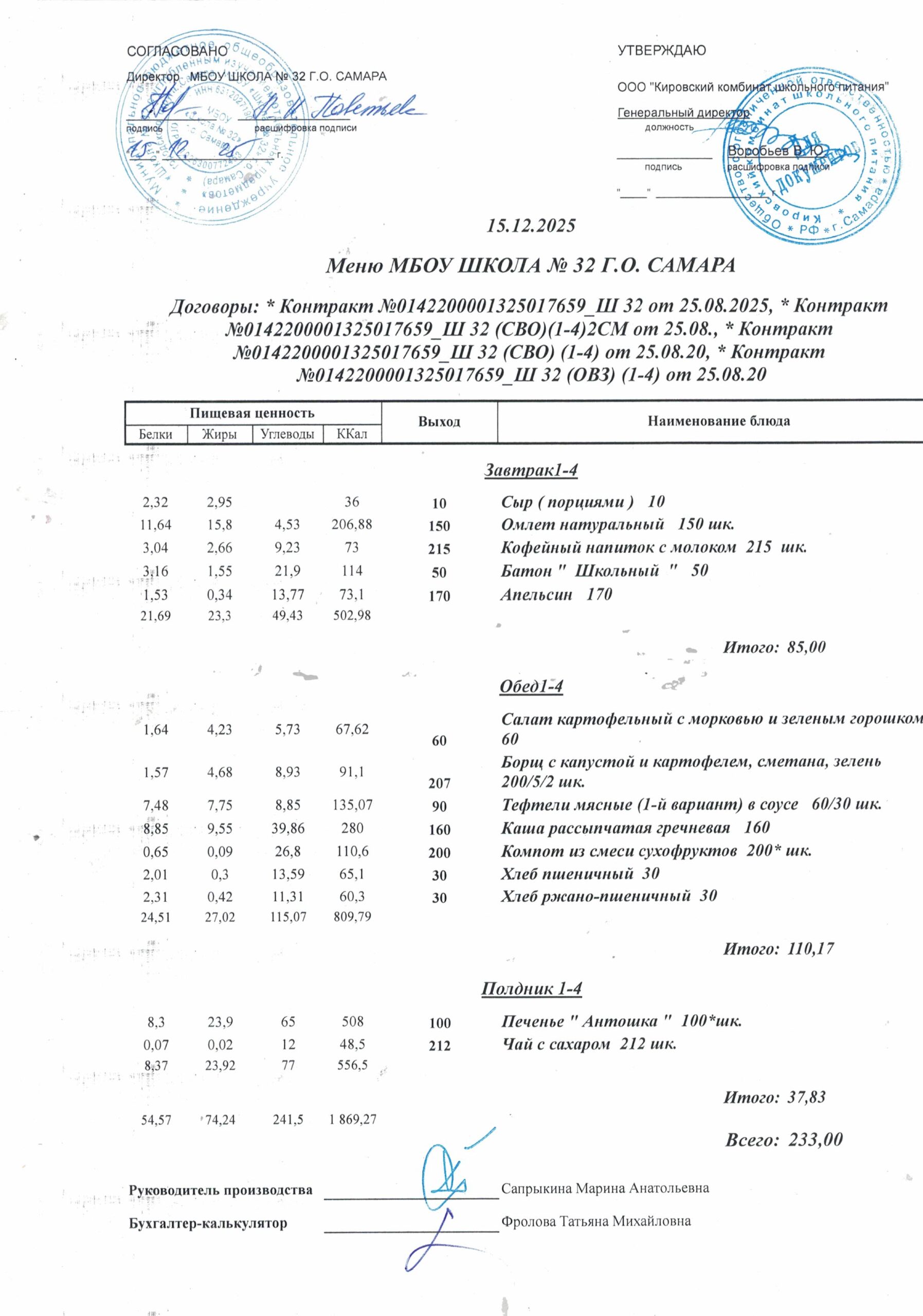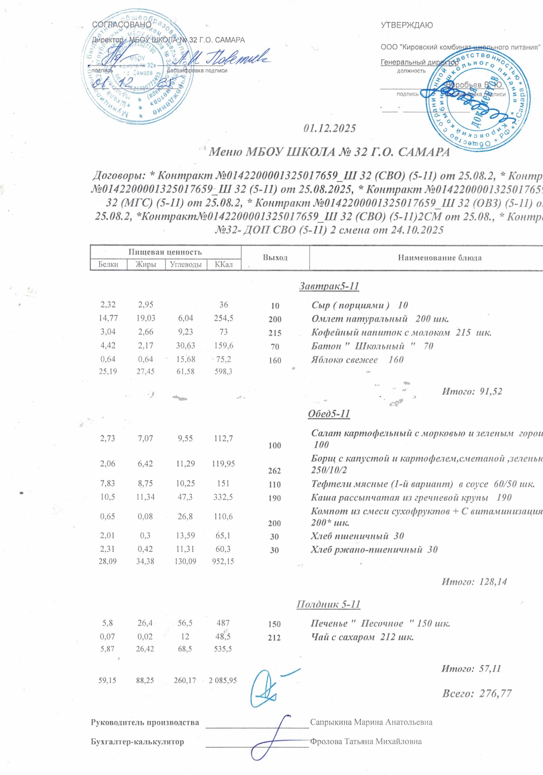 | 1-4 класс (льготное питание) | 5-11 класс | ||