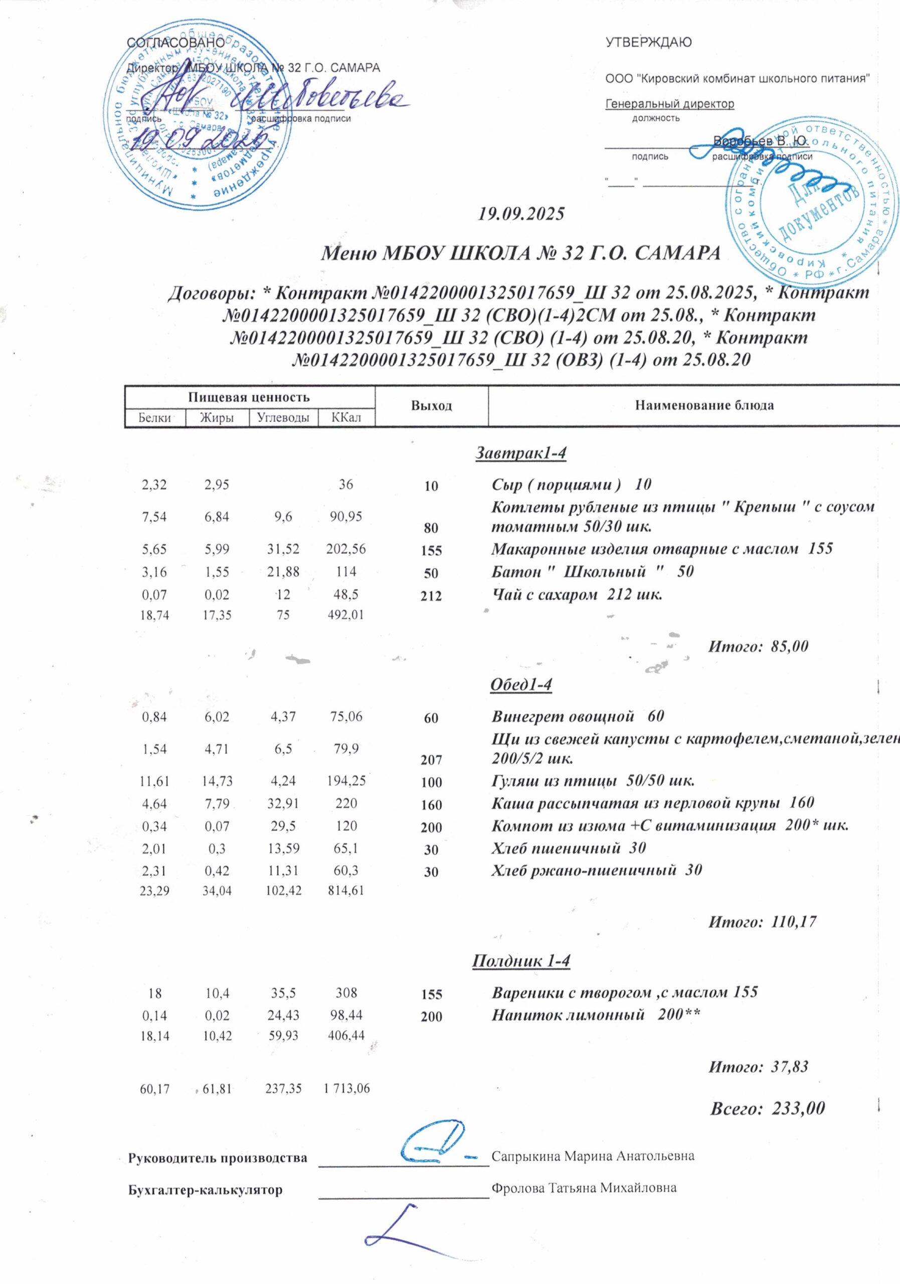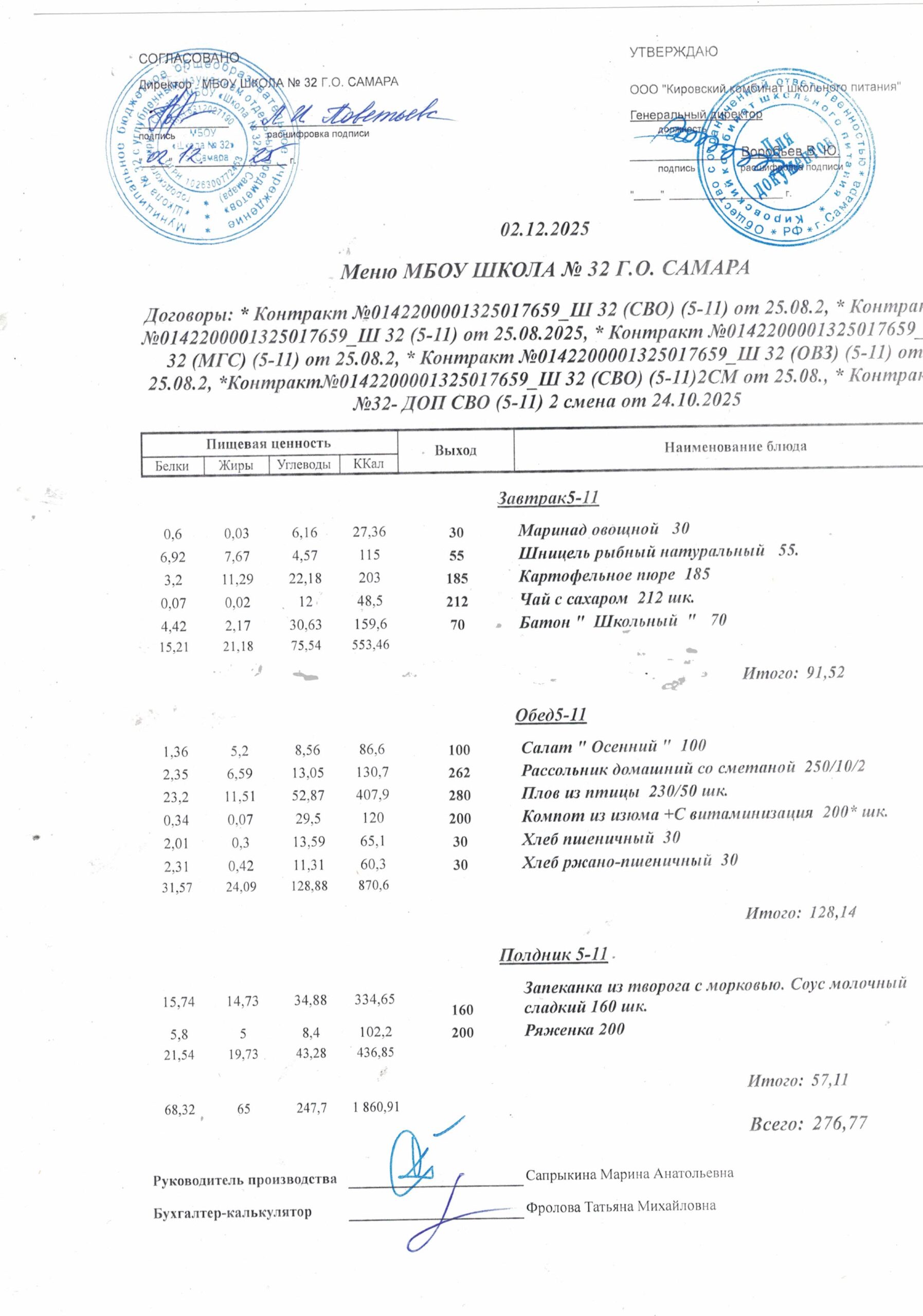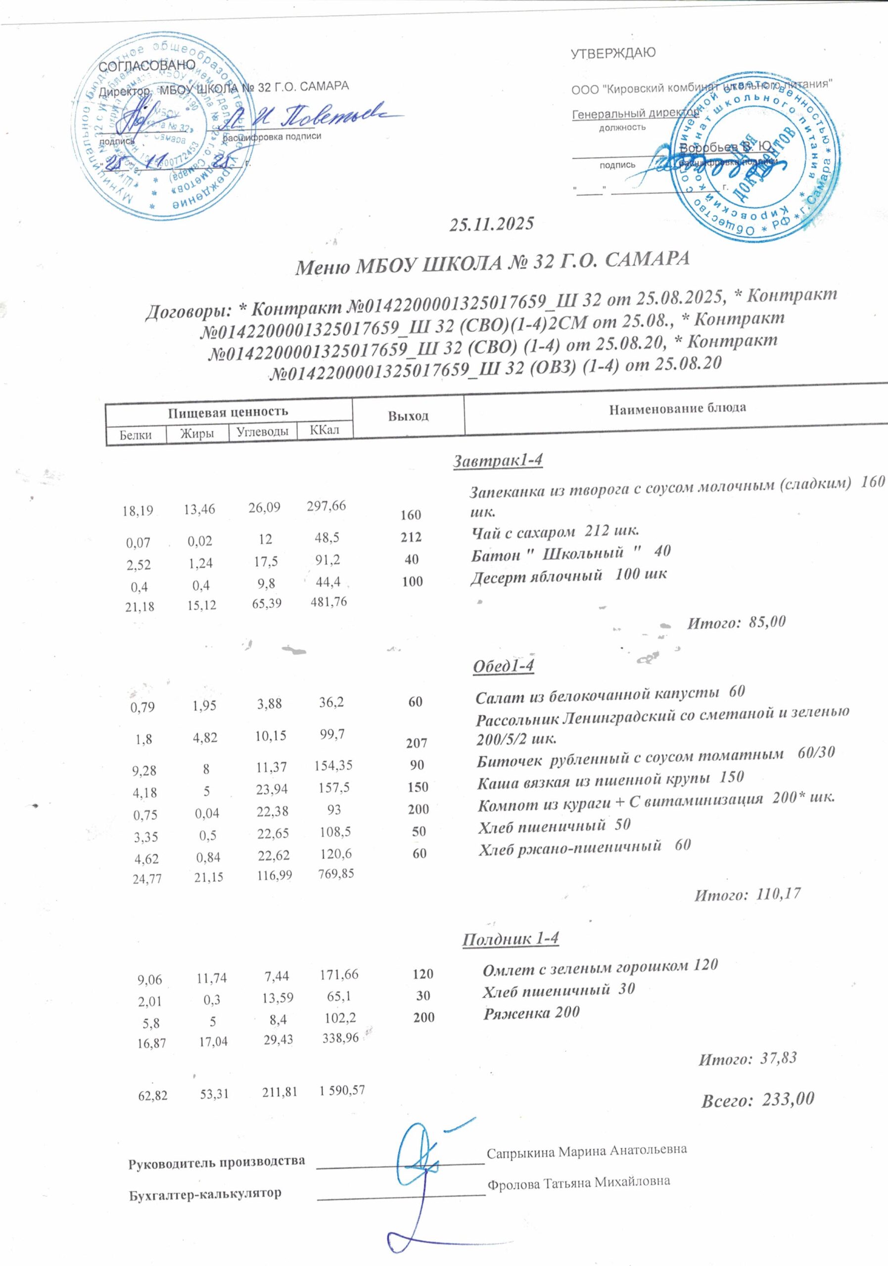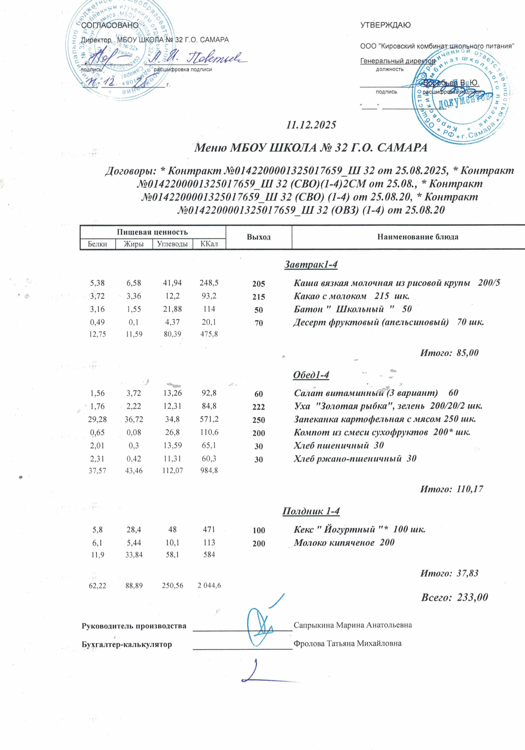 | 1-4 класс (льготное питание) | 5-11 класс | ||