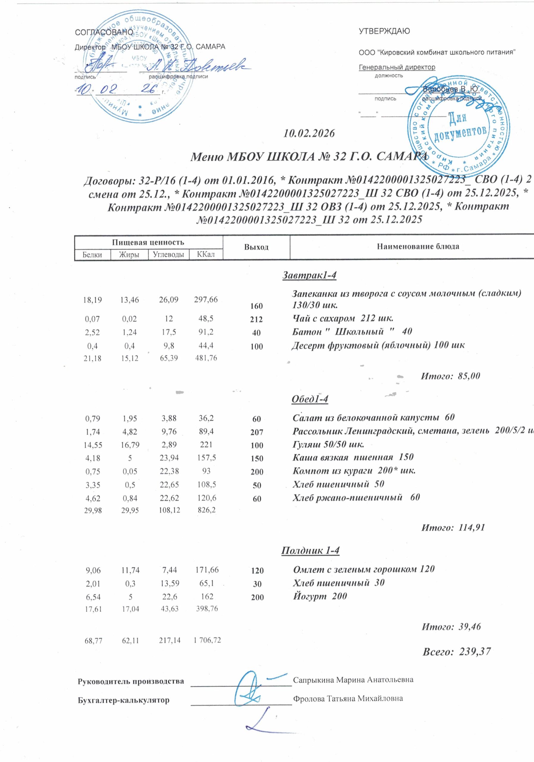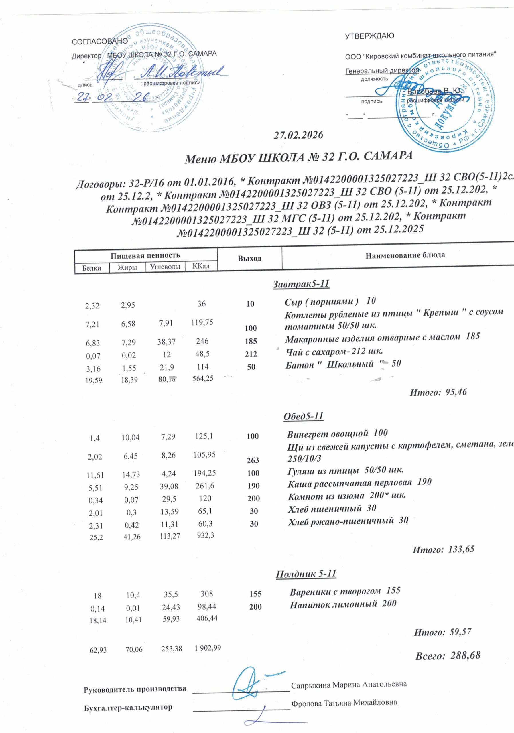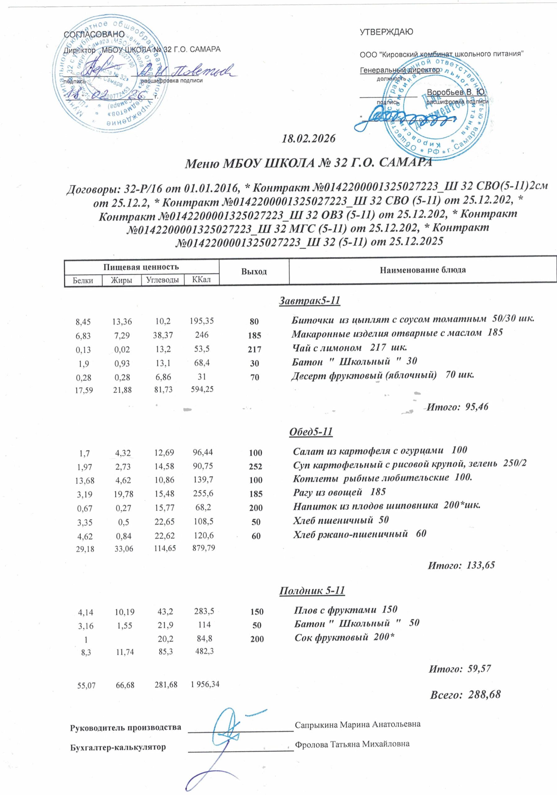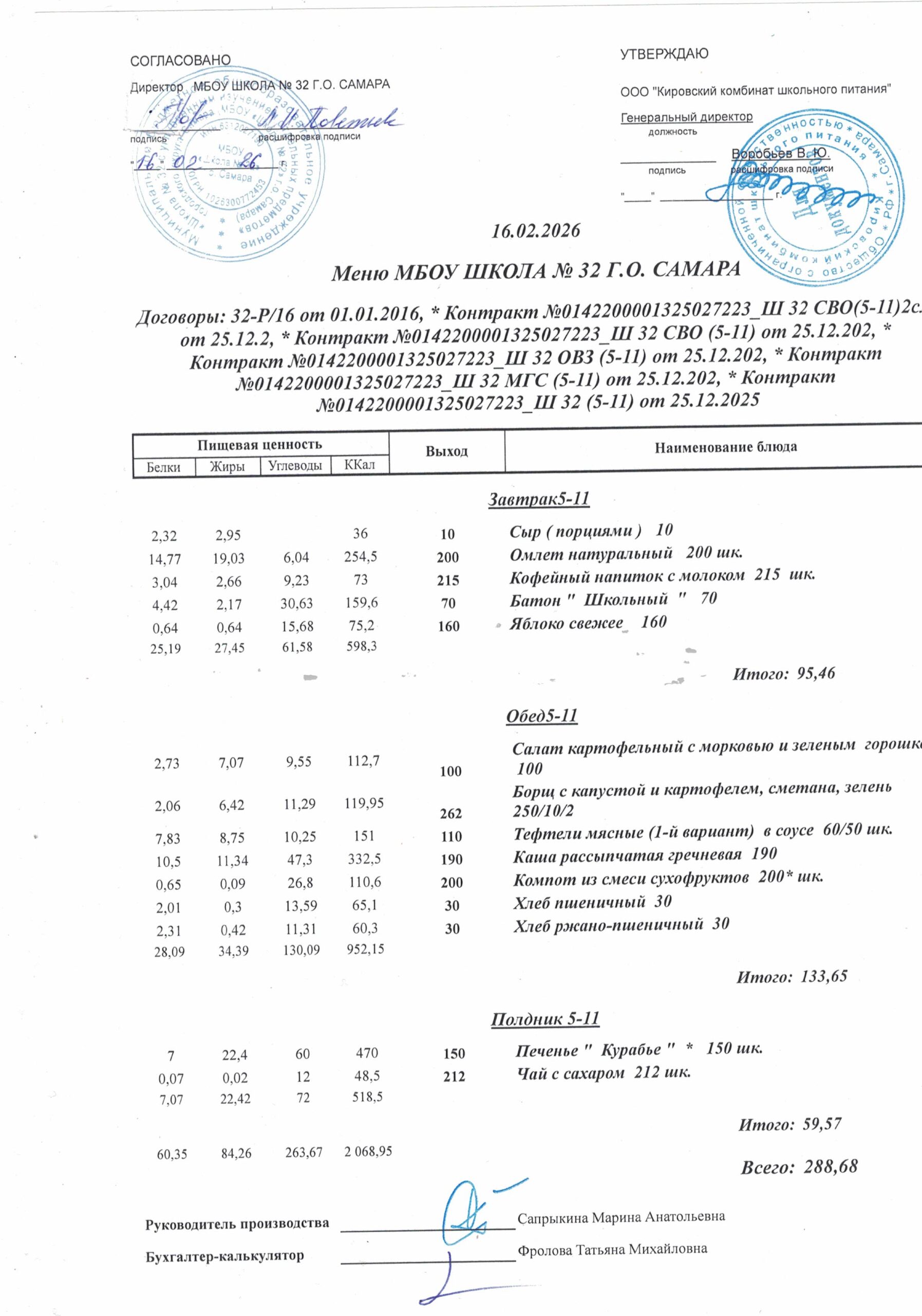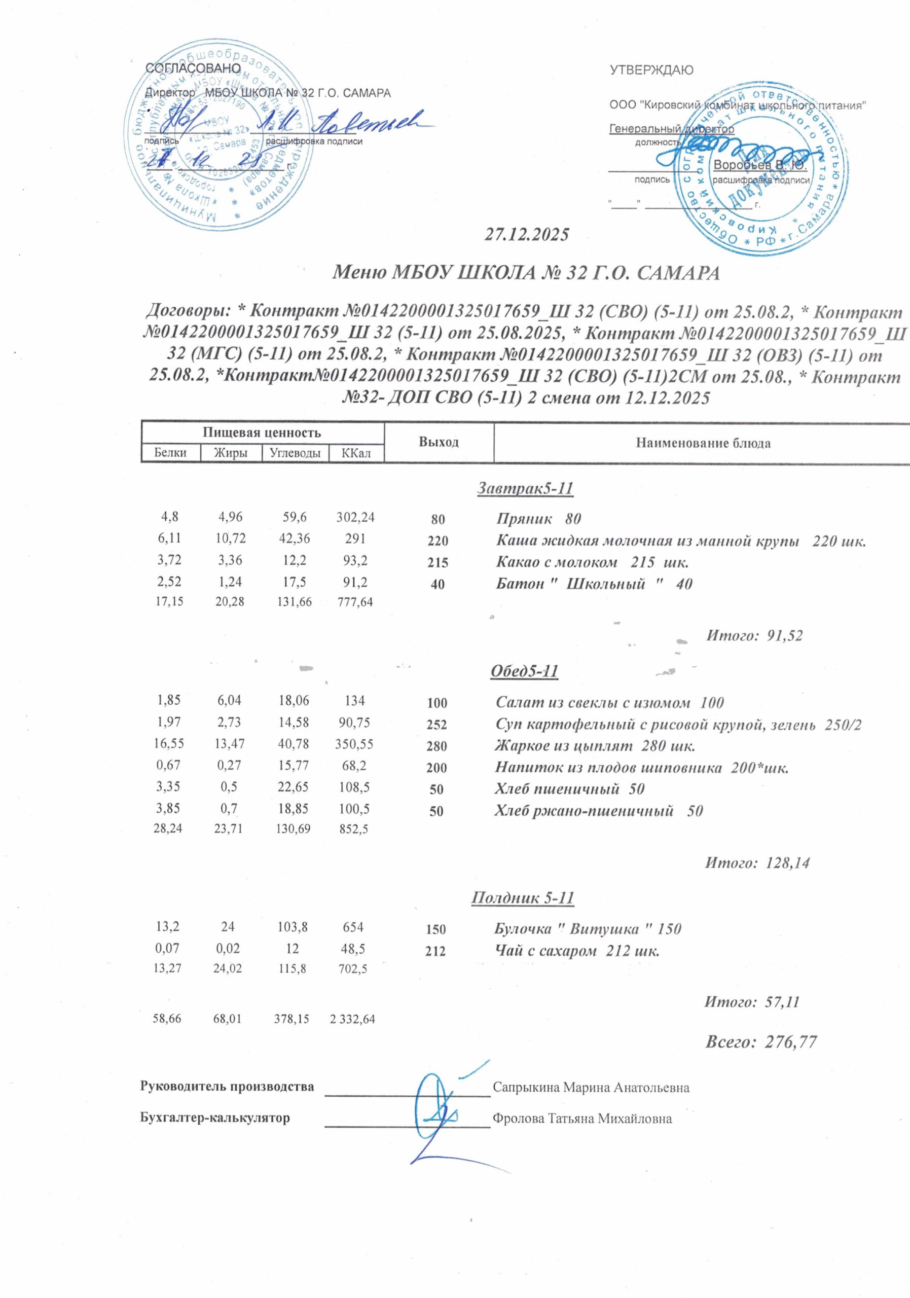 Утвержденные, сканированные копии ежедневного меню