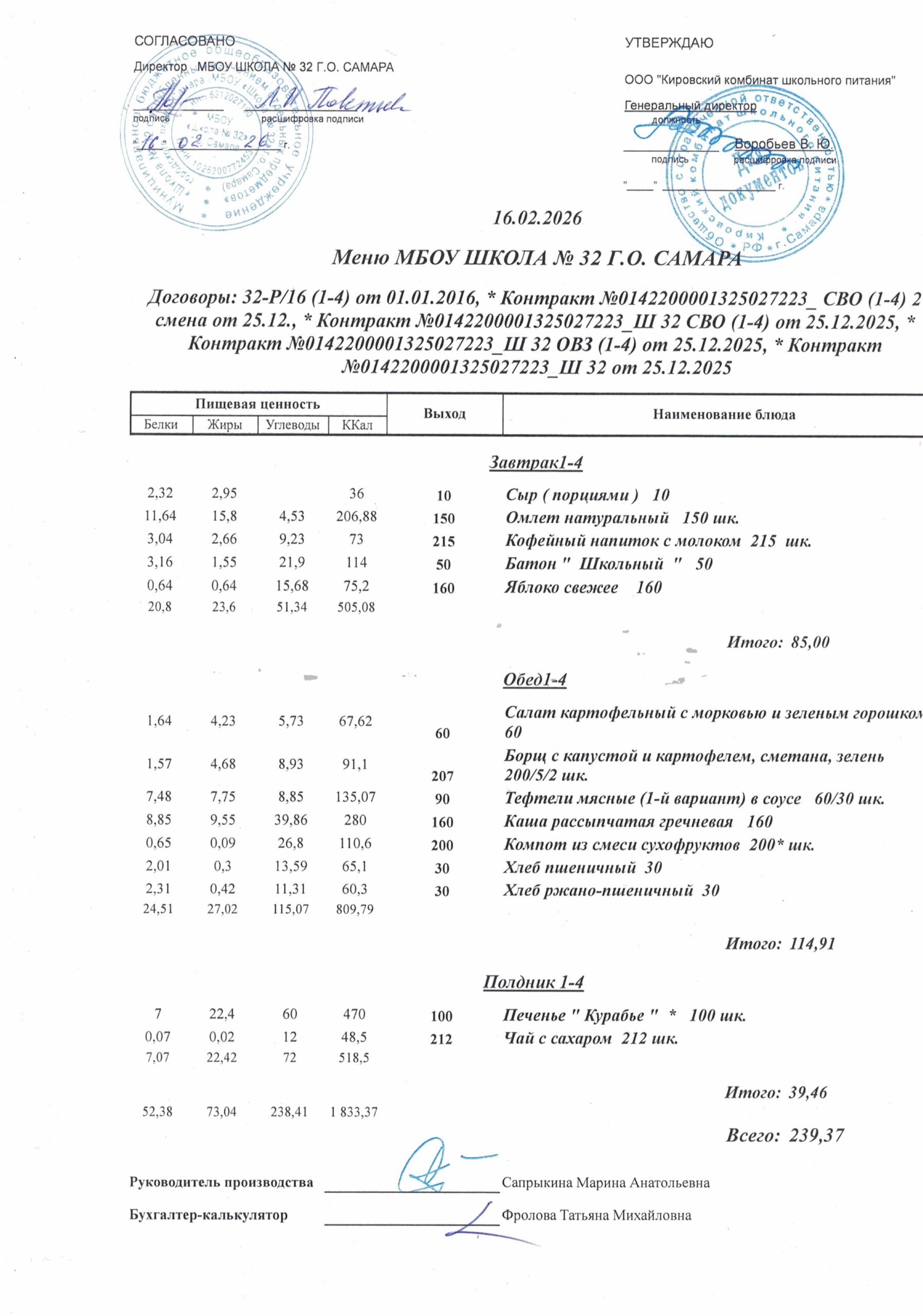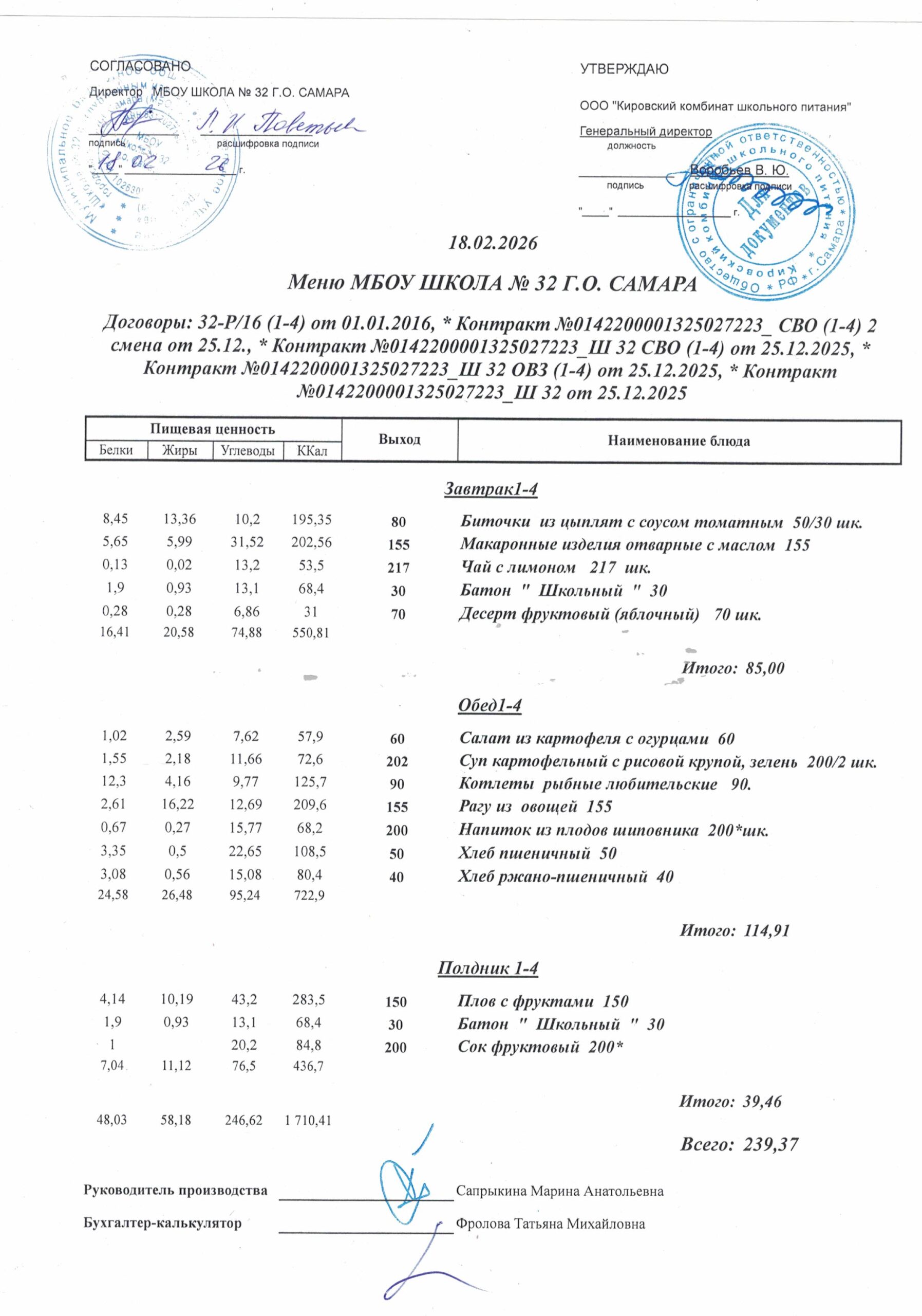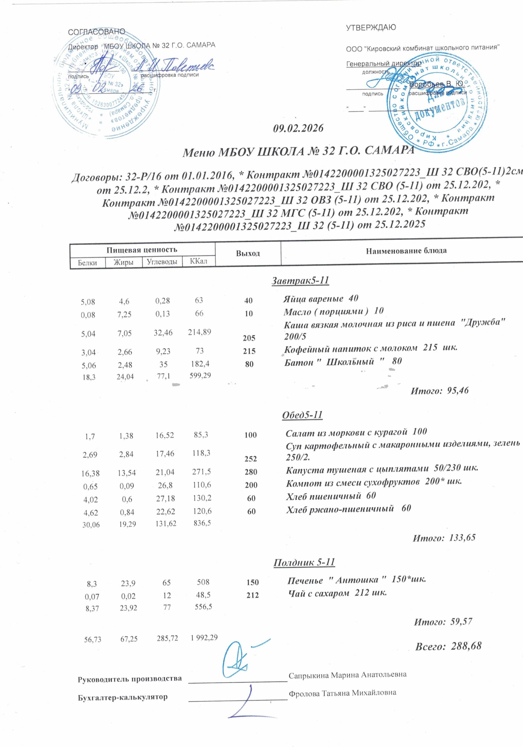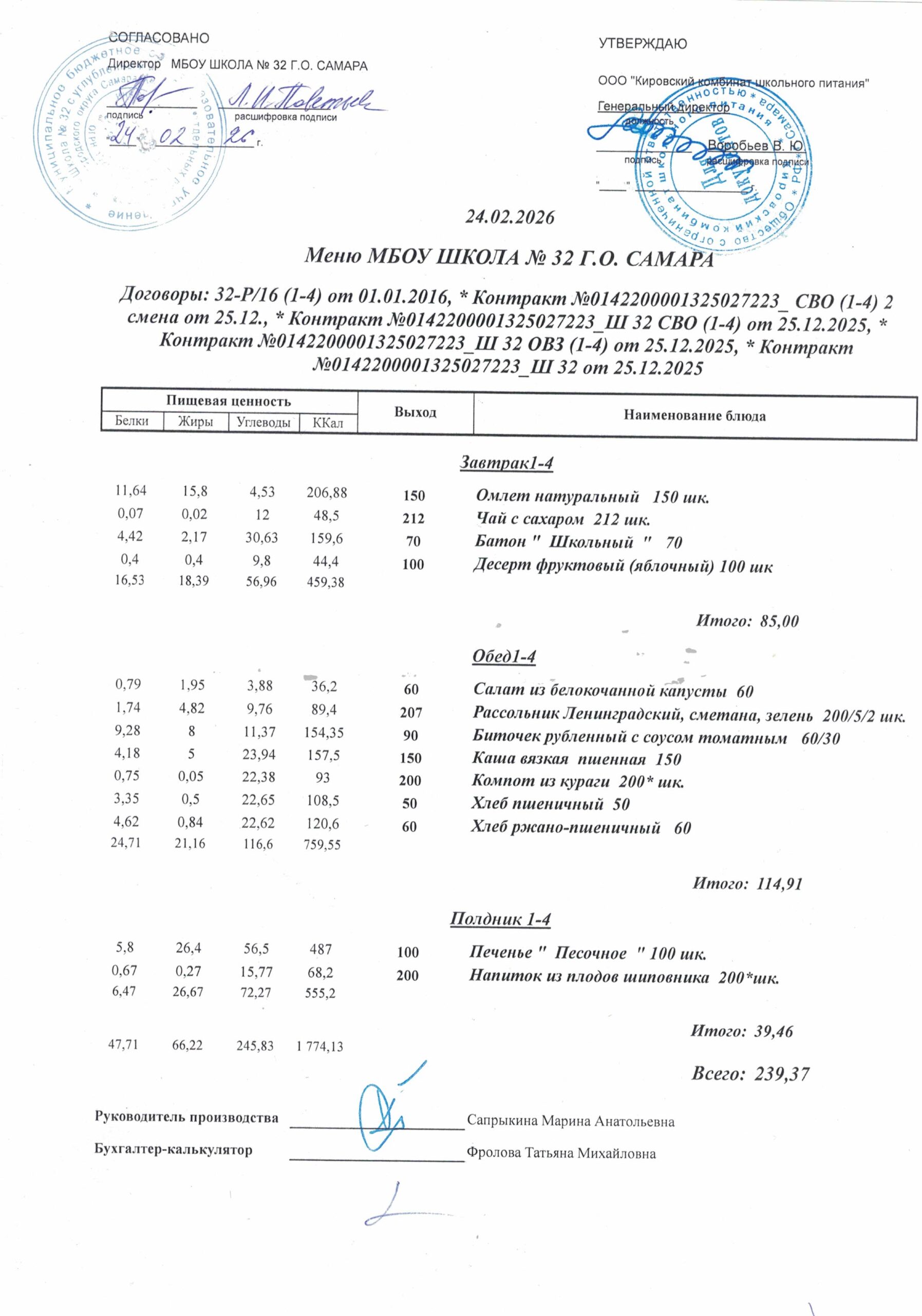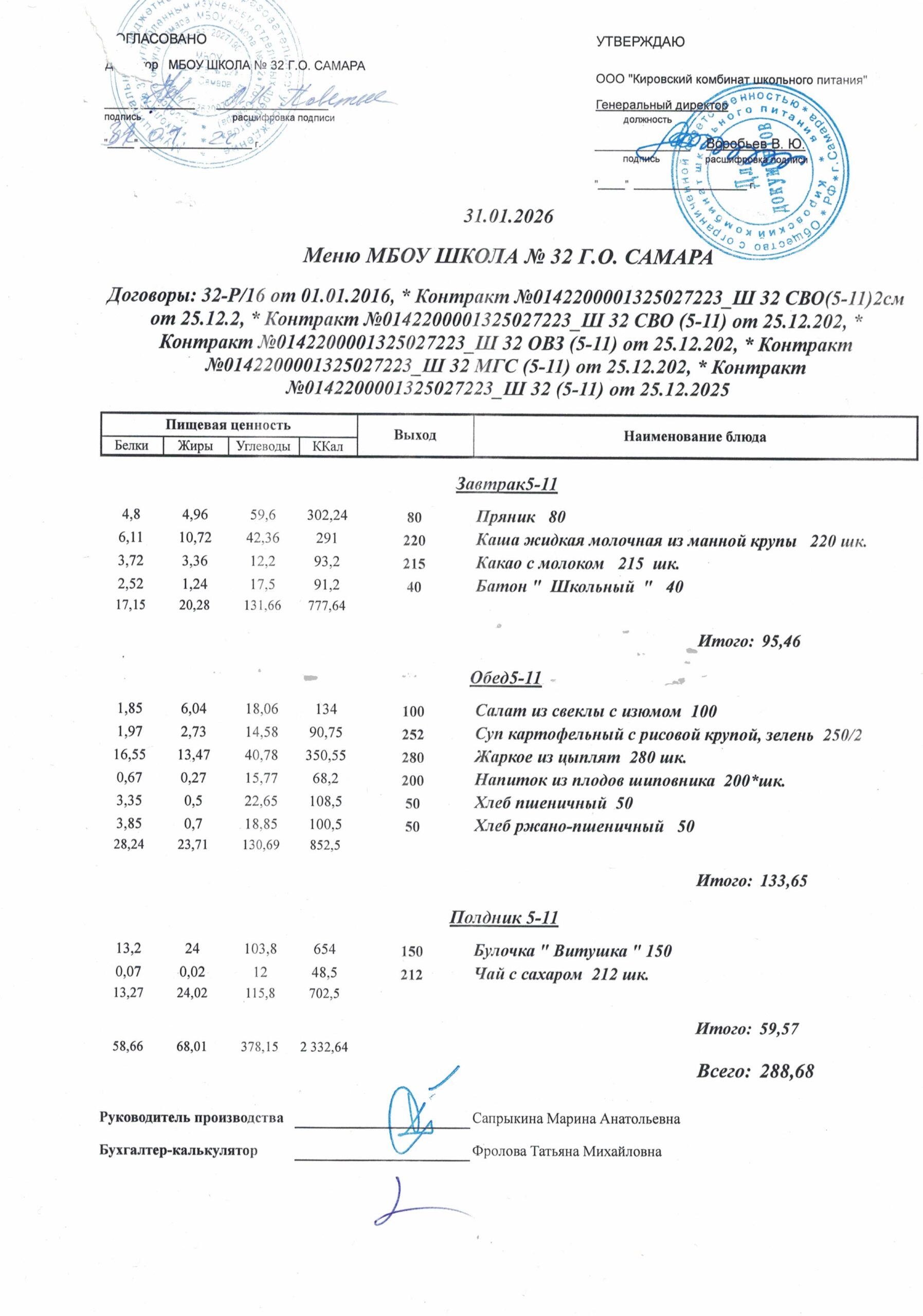 Утвержденные, сканированные копии ежедневного меню