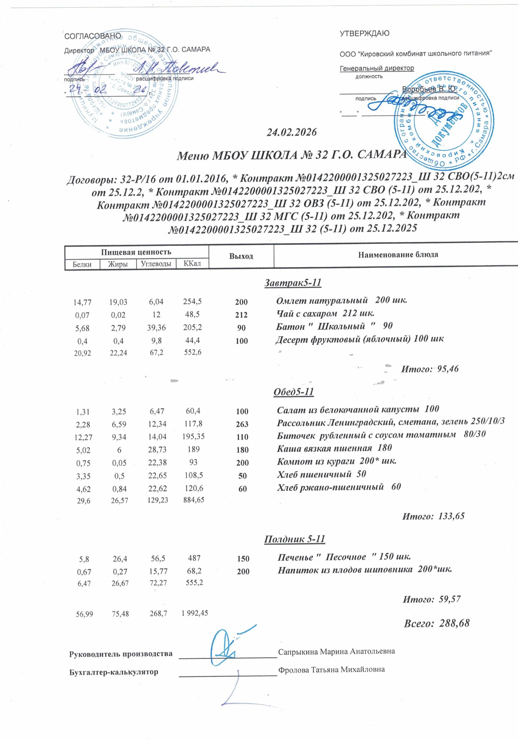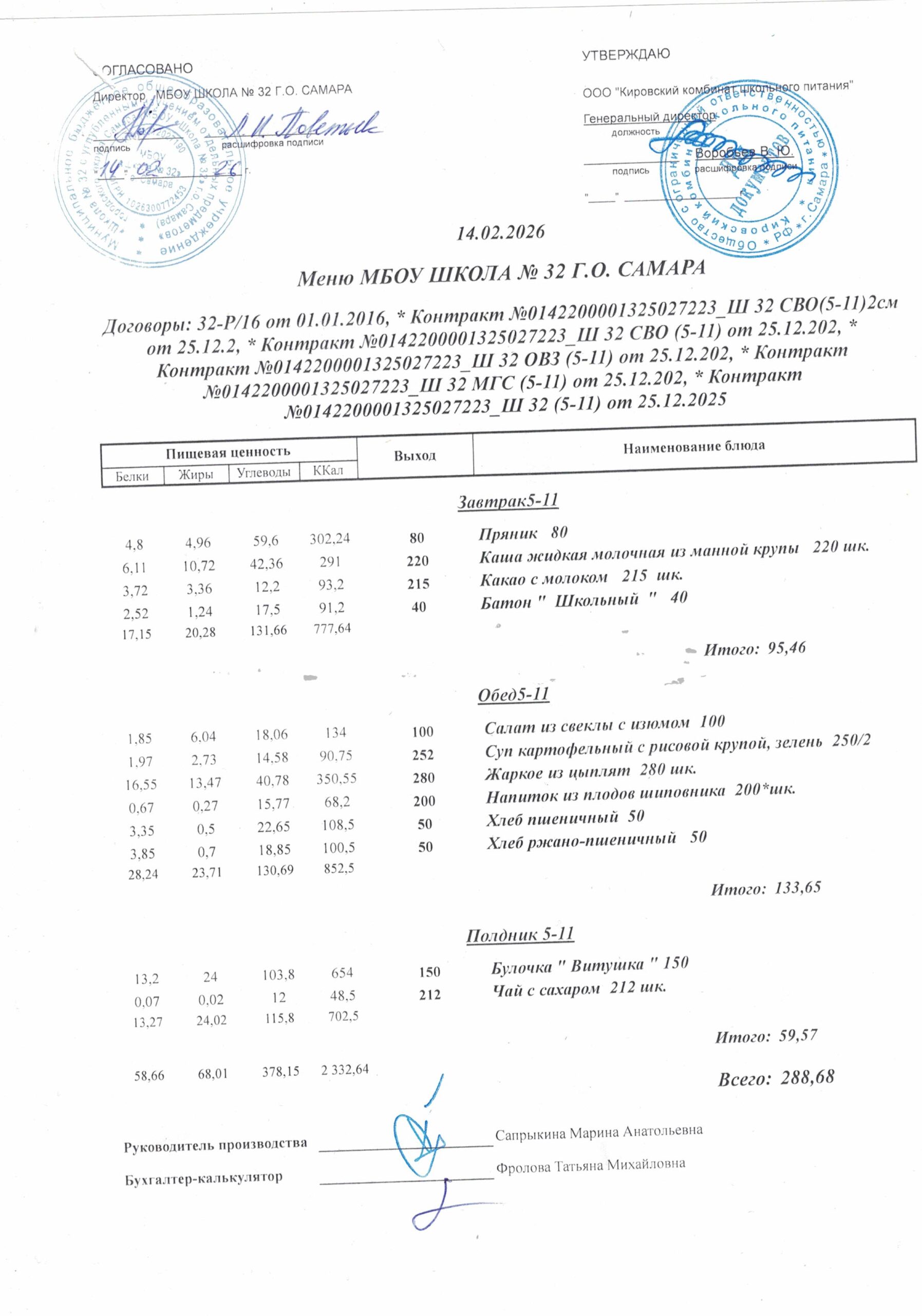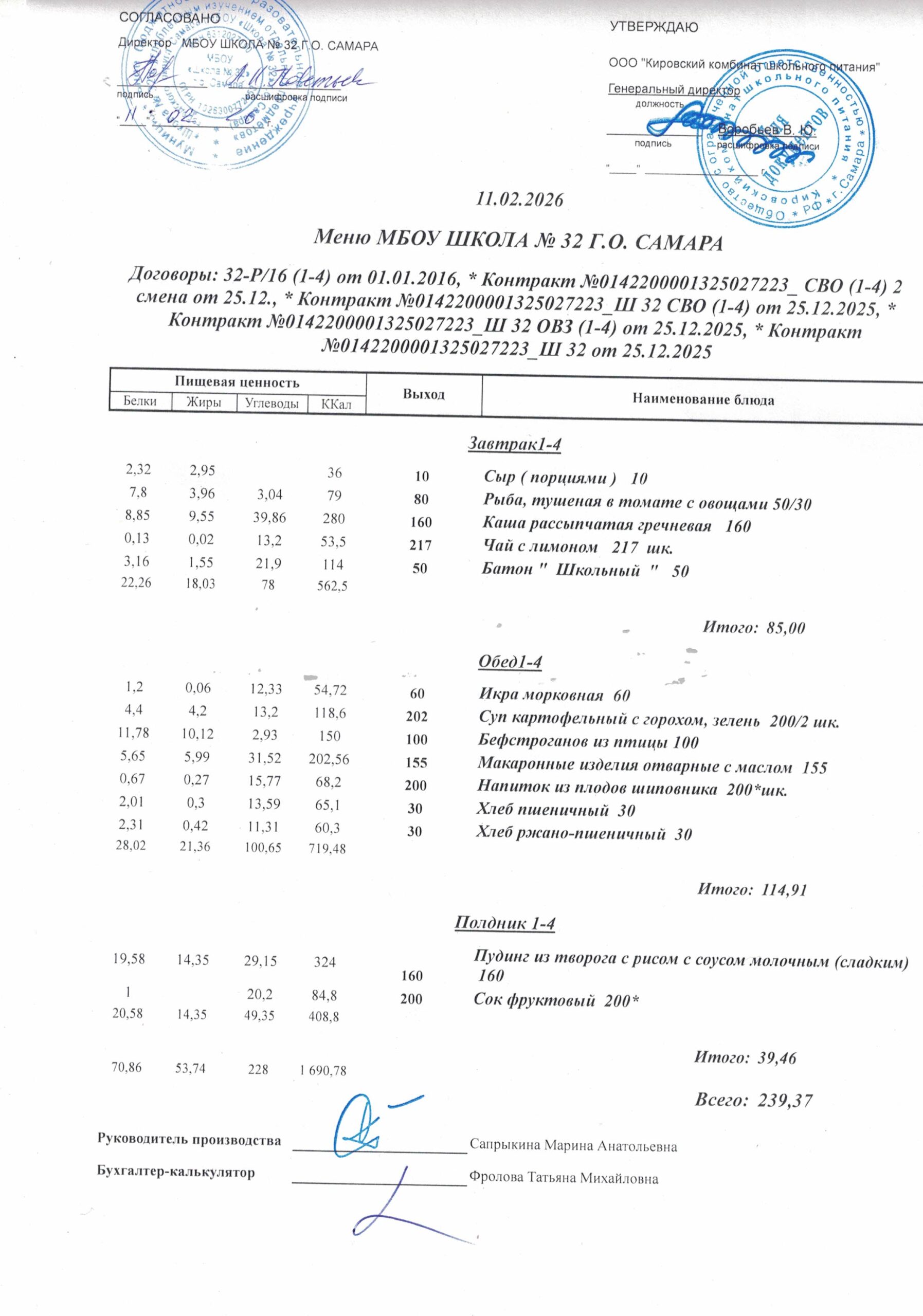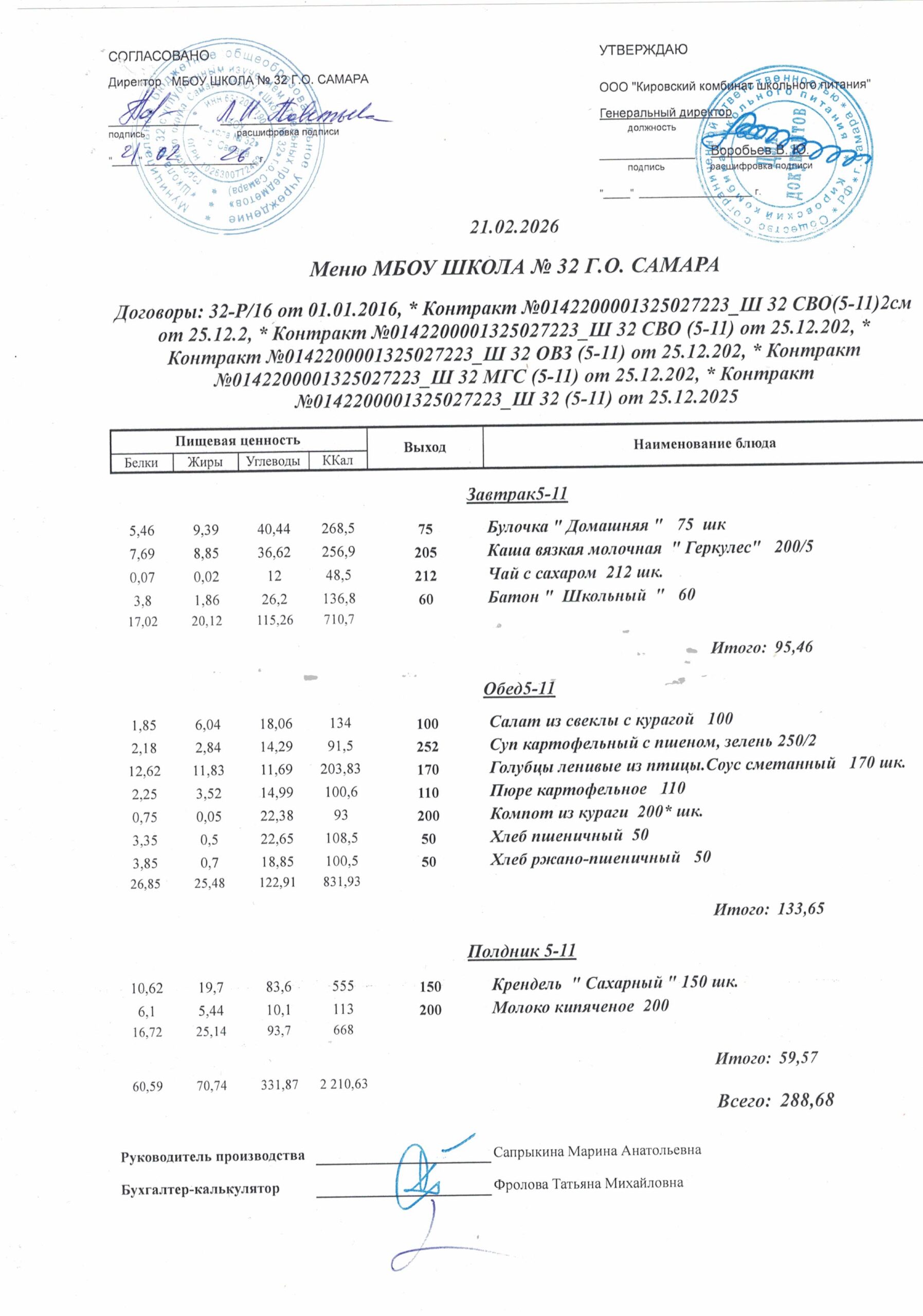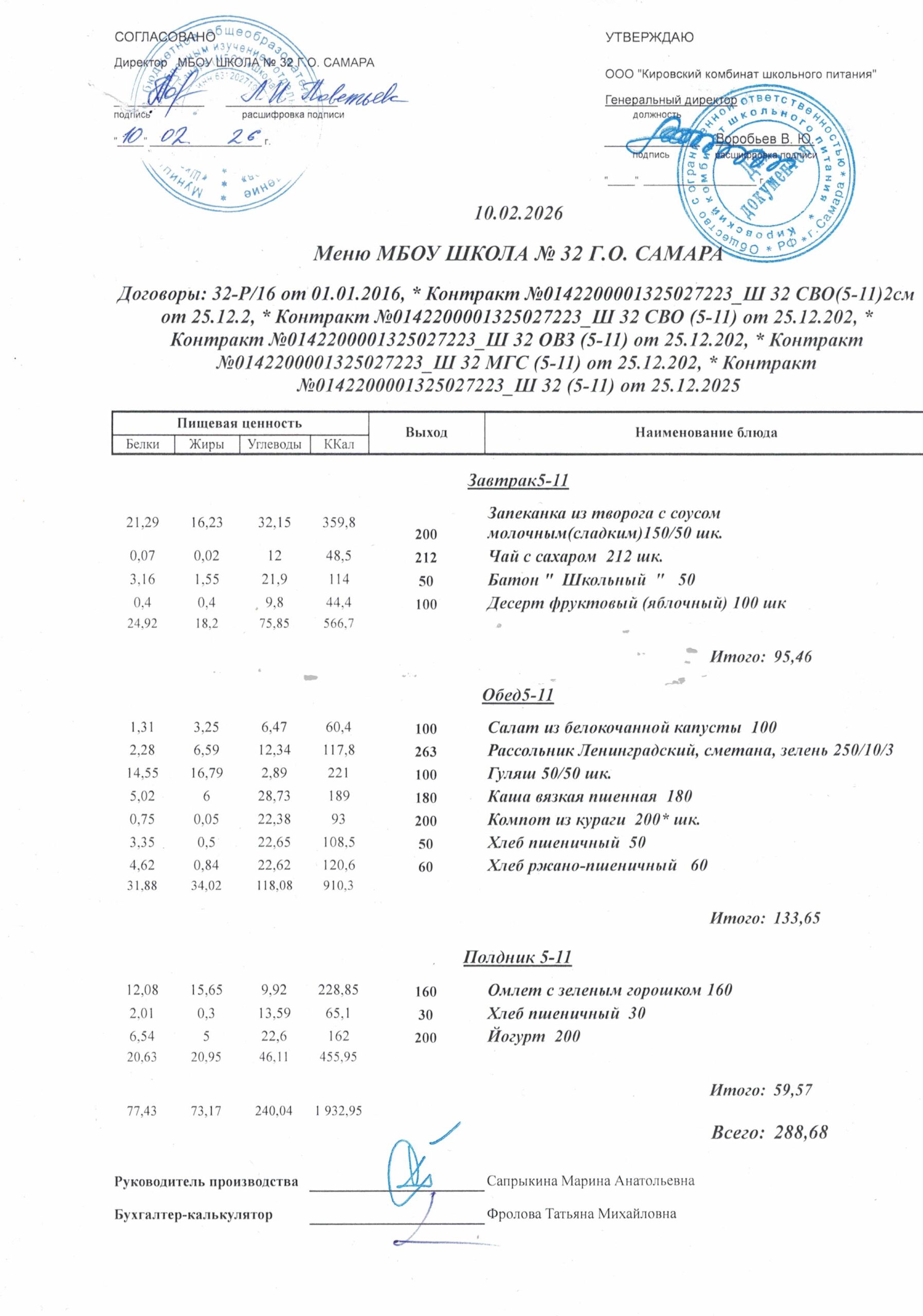 Утвержденные, сканированные копии ежедневного меню